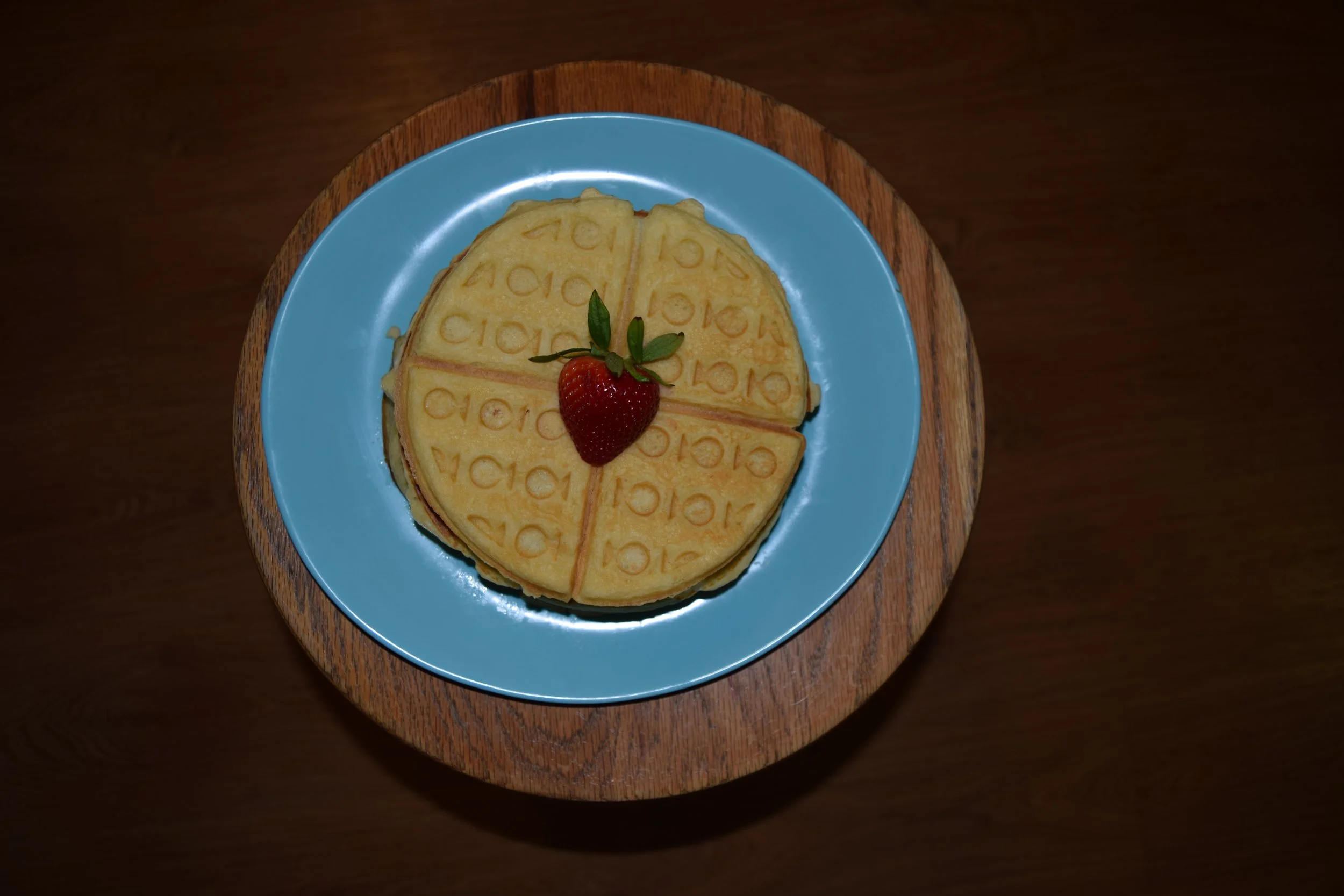 1/2 way between an eggo and a traditional waffle… Fish-sized holes perfectly optimized for collecting the right ratio of syrup… What’s not to love?